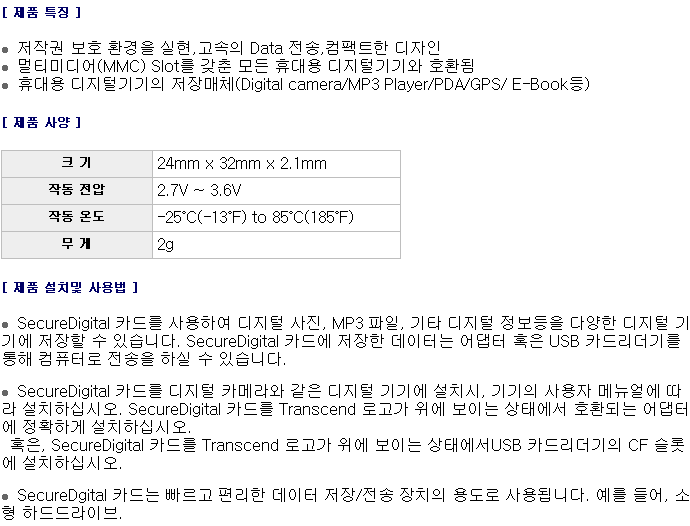 Æ®·£»÷µå SD 2GB MLC, TRANSCEND SD 2GB (MLC)