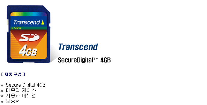 Æ®·£»÷µå SD 4GB MLC, TRANSCEND SD 4GB (MLC)