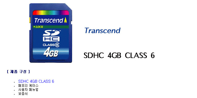 Æ®·£»÷µå SDHC 4GB CLASS6, TRANSCEND SDHC 4GB CLASS6