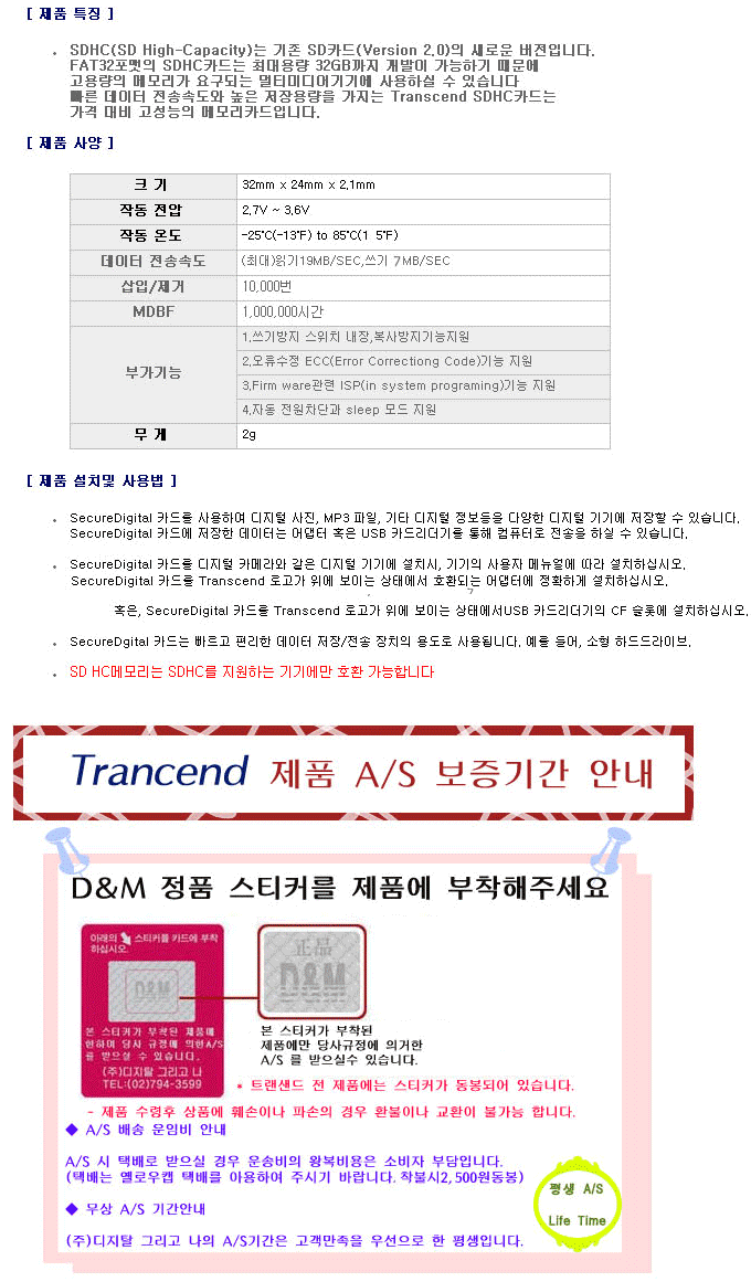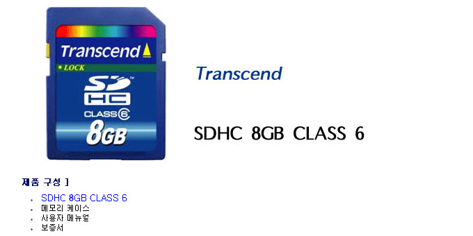 Æ®·£»÷µå SDHC 8GB CLASS6, TRANSCEND SDHC 8GB CLASS6