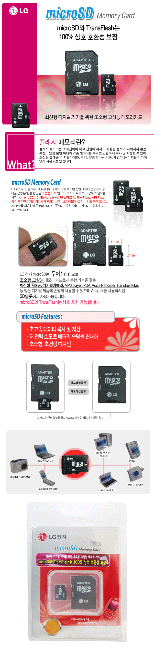 LG microSD 1GB, ¿¤Áö T-FLASH 1G, SD¾Æ´äŸÆ÷ÇÔ